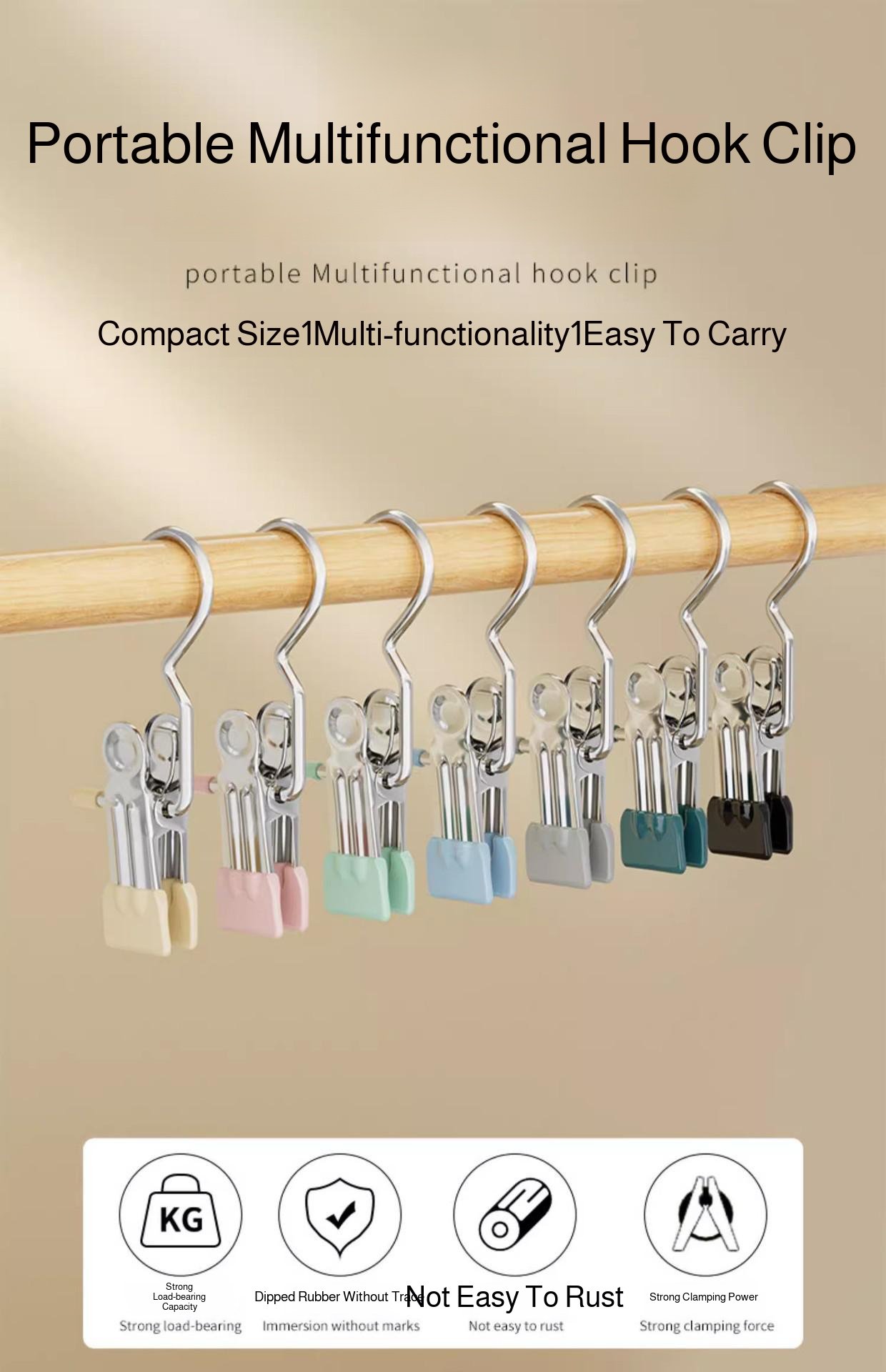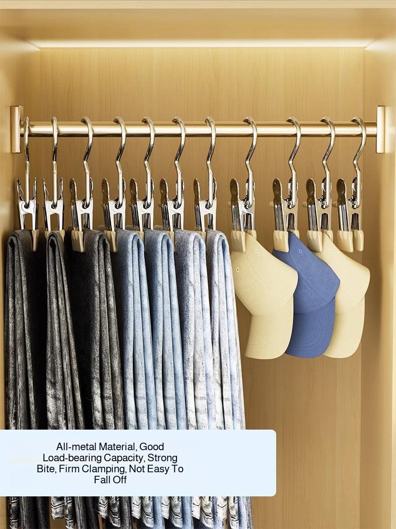 Multifunctional clip with hook, seamless stainless steel clothespin, single hook, pants rack, pants